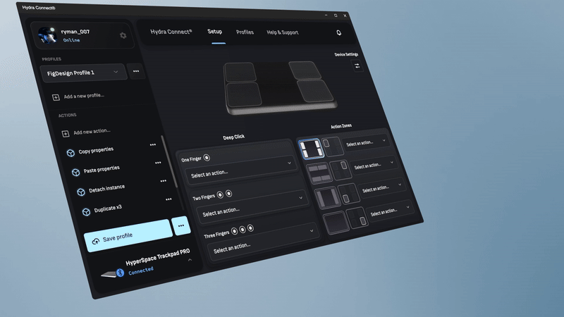 Basic trackpad functions work out of the box, but our companion application, Hydra® Connect unlocks advanced force and haptics customization, unique deep-click interactions, and intuitive software shortcuts for creative, productivity, and more.